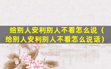 给别人安利别人不看怎么说(给别人安利别人不看怎么说话)