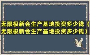 无限极新会生产基地投资多少钱(无限极新会生产基地投资多少钱)