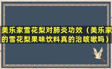 美乐家雪花梨对肺炎功效(美乐家的雪花梨果味饮料真的治咳嗽吗)