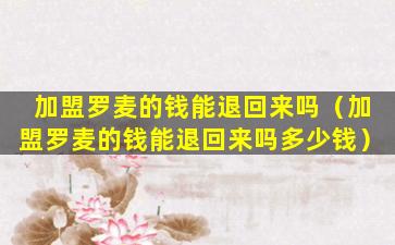 加盟罗麦的钱能退回来吗(加盟罗麦的钱能退回来吗多少钱)