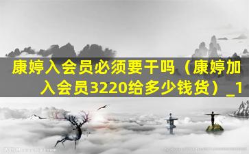 康婷入会员必须要干吗(康婷加入会员3220给多少钱货)