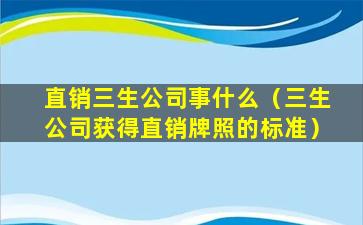 直销三生公司事什么(三生公司获得直销牌照的标准)