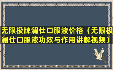 无限极牌澜仕口服液价格(无限极澜仕口服液功效与作用讲解视频)