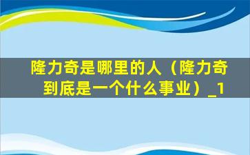 隆力奇是哪里的人(隆力奇到底是一个什么事业)