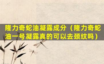 隆力奇蛇油凝露成分(隆力奇蛇油一号凝露真的可以去颈纹吗)