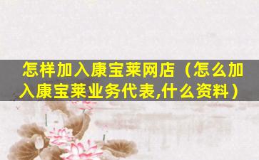怎样加入康宝莱网店(怎么加入康宝莱业务代表,什么资料)