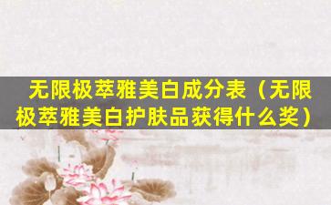 无限极萃雅美白成分表(无限极萃雅美白护肤品获得什么奖)