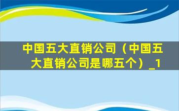 直销行业在中国蓬勃发展,涌现出一批实力雄厚的企业。以下列举中国五大直销公司,按成立时间先后排序: