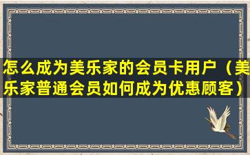 怎么成为美乐家的会员卡用户(美乐家普通会员如何成为优惠顾客)