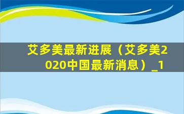 艾多美最新进展(艾多美2020中国最新消息)