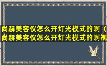 尚赫美容仪怎么开灯光模式的啊(尚赫美容仪怎么开灯光模式的啊视频教程)