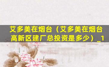 艾多美在烟台(艾多美在烟台高新区建厂总投资是多少)