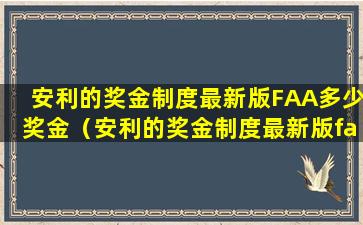 安利的奖金制度最新版FAA多少奖金(安利的奖金制度最新版faa多少奖金)