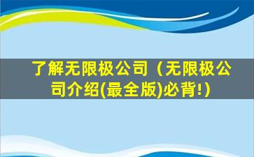 了解无限极公司(无限极公司介绍(最全版)必背!)