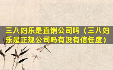 三八妇乐是直销公司吗(三八妇乐是正规公司吗有没有信任度)