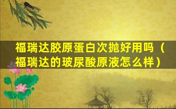 福瑞达胶原蛋白次抛好用吗(福瑞达的玻尿酸原液怎么样)