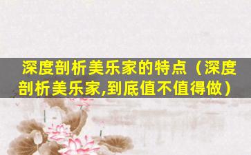 深度剖析美乐家的特点(深度剖析美乐家,到底值不值得做)