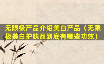 无限极产品介绍美白产品(无限极美白护肤品到底有哪些功效)