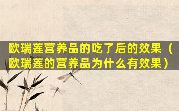 欧瑞莲营养品的吃了后的效果(欧瑞莲的营养品为什么有效果)