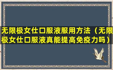 无限极女仕口服液服用方法(无限极女仕口服液真能提高免疫力吗)