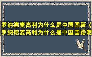 罗纳德麦高利为什么是中国国籍(罗纳德麦高利为什么是中国国籍呢)