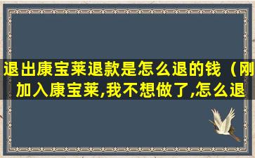 退出康宝莱退款是怎么退的钱(刚加入康宝莱,我不想做了,怎么退货)