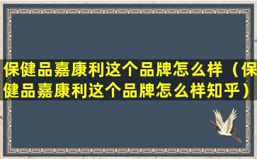 保健品嘉康利这个品牌怎么样(保健品嘉康利这个品牌怎么样知乎)