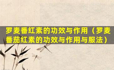 罗麦番红素的功效与作用(罗麦番茄红素的功效与作用与服法)