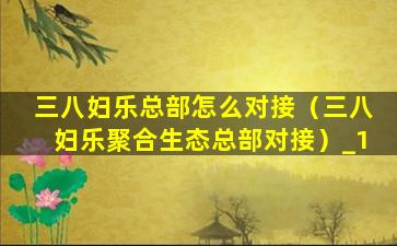 三八妇乐总部怎么对接(三八妇乐聚合生态总部对接)