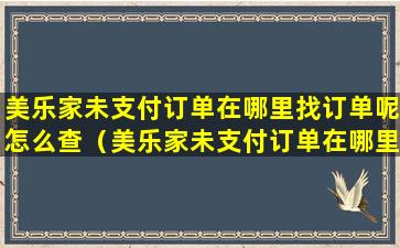 美乐家未支付订单在哪里找订单呢怎么查(美乐家未支付订单在哪里找订单呢怎么查看)