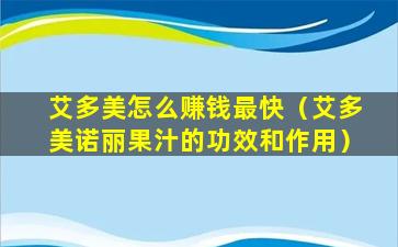 艾多美怎么赚钱最快(艾多美诺丽果汁的功效和作用)
