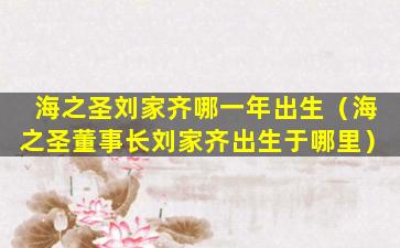海之圣刘家齐哪一年出生(海之圣董事长刘家齐出生于哪里)