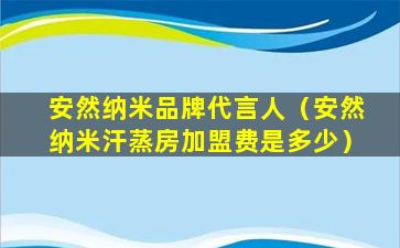 安然纳米品牌代言人(安然纳米汗蒸房加盟费是多少)