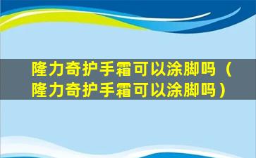 隆力奇护手霜可以涂脚吗(隆力奇护手霜可以涂脚吗)