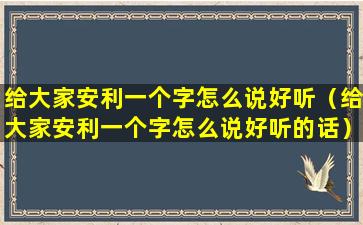 给大家安利一个字怎么说好听(给大家安利一个字怎么说好听的话)