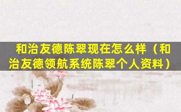 和治友德陈翠现在怎么样(和治友德领航系统陈翠个人资料)