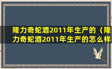 隆力奇蛇酒2011年生产的(隆力奇蛇酒2011年生产的怎么样)
