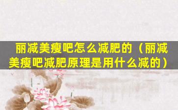 1、丽减美瘦吧怎么减肥的