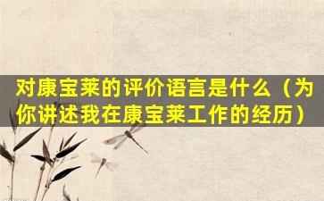 对康宝莱的评价语言是什么(为你讲述我在康宝莱工作的经历)