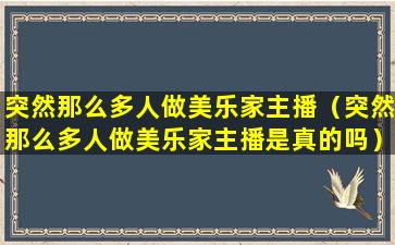 突然那么多人做美乐家主播(突然那么多人做美乐家主播是真的吗)