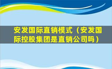 安发国际直销模式(安发国际控股集团是直销公司吗)