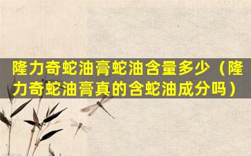 隆力奇蛇油膏蛇油含量多少(隆力奇蛇油膏真的含蛇油成分吗)