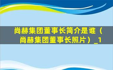 尚赫集团董事长简介是谁(尚赫集团董事长照片)