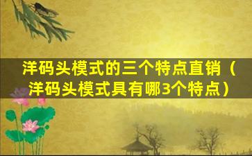 洋码头模式的三个特点直销(洋码头模式具有哪3个特点)