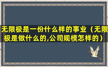 无限极是一份什么样的事业(无限极是做什么的,公司规模怎样的)
