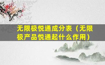 无限极悦通成分表(无限极产品悦通起什么作用)