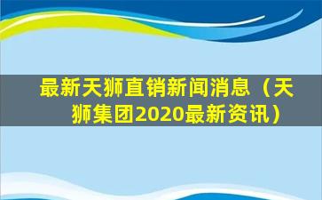 最新天狮直销新闻消息(天狮集团2020最新资讯)