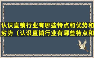 认识直销行业有哪些特点和优势和劣势(认识直销行业有哪些特点和优势和劣势呢)