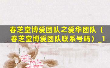 春芝堂博爱团队之爱华团队(春芝堂博爱团队联系号码)