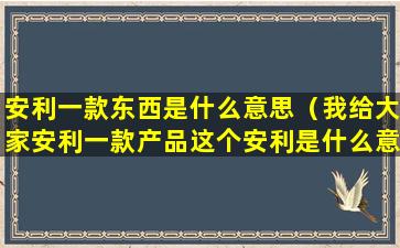 安利一款东西是什么意思(我给大家安利一款产品这个安利是什么意思)